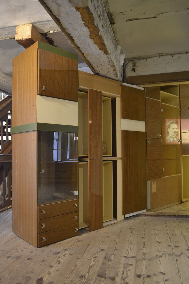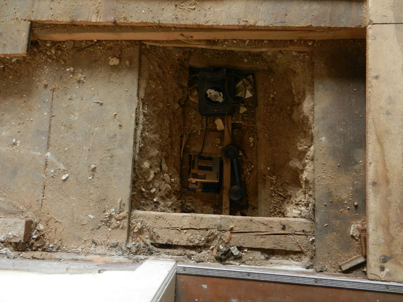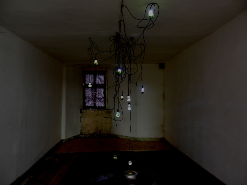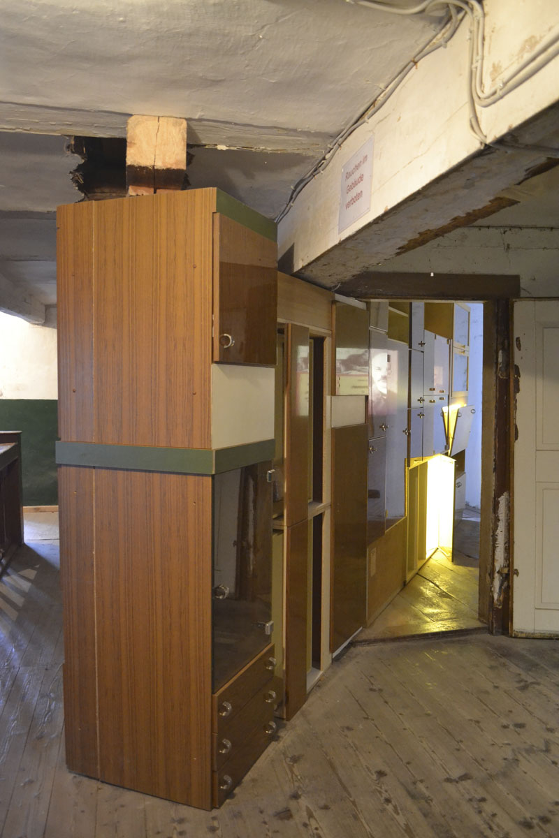 The building contains a collection of GDR products. FBJ used electronic devices from the collection to install a sound-and lightinstallation in a hole in the floor and the room below, creating a reminiscence of a culture that very quickly disappeared and now lives on in a kind of mental underground.