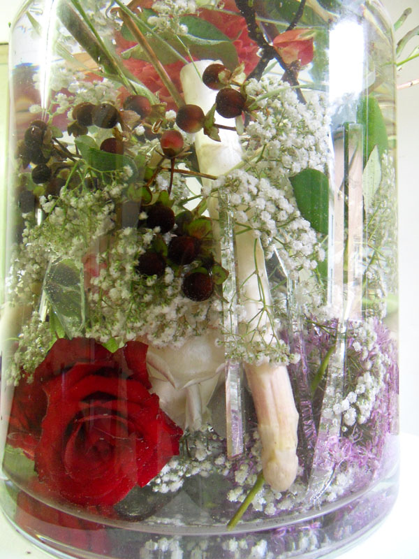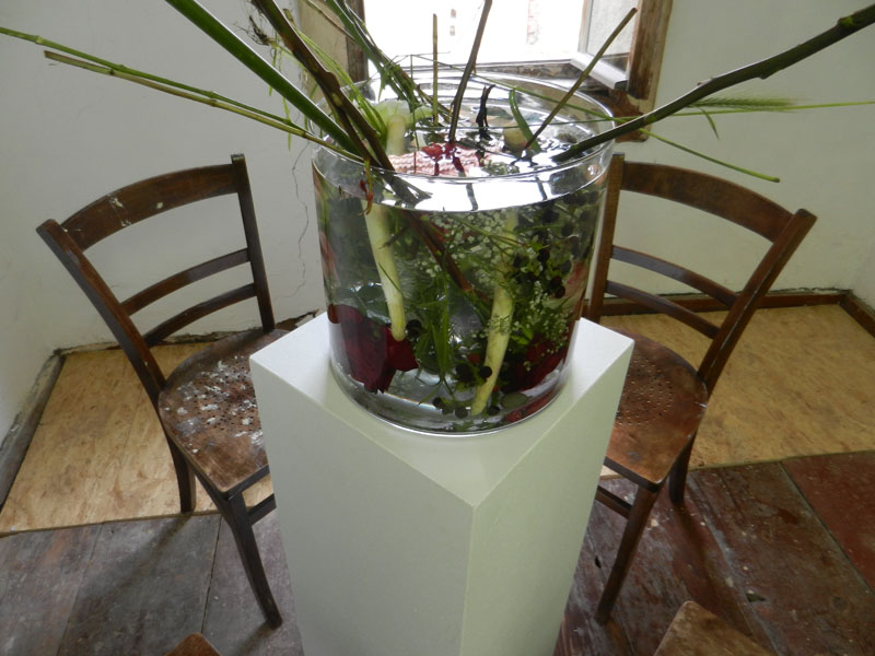 „Self-Portrait in Decomposition“ is a living/dying work in reference to the french for still life: nature morte, this would be a nature mourante (roughly translates as life being stilled) This floral composition in decomposition is about the passage of time, the journey from life to death and the evolution of beauty. AC