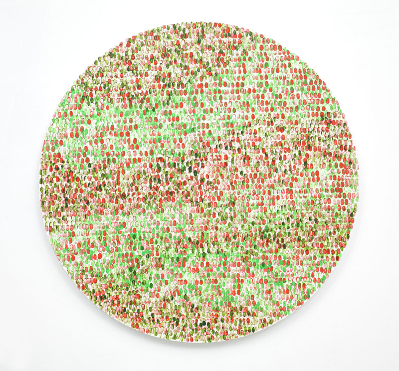 Stefan Kreide was born in Germany in 1973. In his works, pigment dust and astonishingly meticulous, tiny structures form surfaces that resemble tissue sections. Overlaps and the impression of blurred boundaries created by drawing techniques turn viewing into a search for clues. Small figures emerge, mainly through the interpretive fervor of the viewer’s brain, and migrate into more or less defined areas of other small forms. Basic patterns of history and stories begin to emerge. — Lisa Spalt for Galerie Maerz, Linz