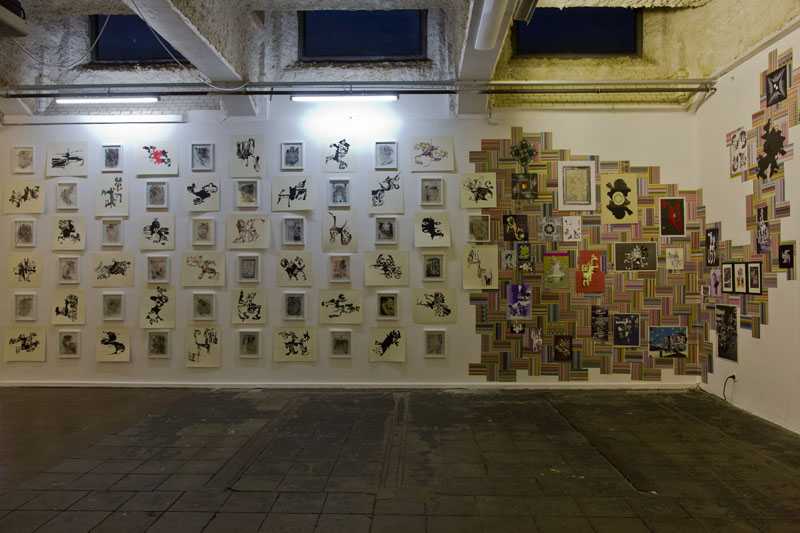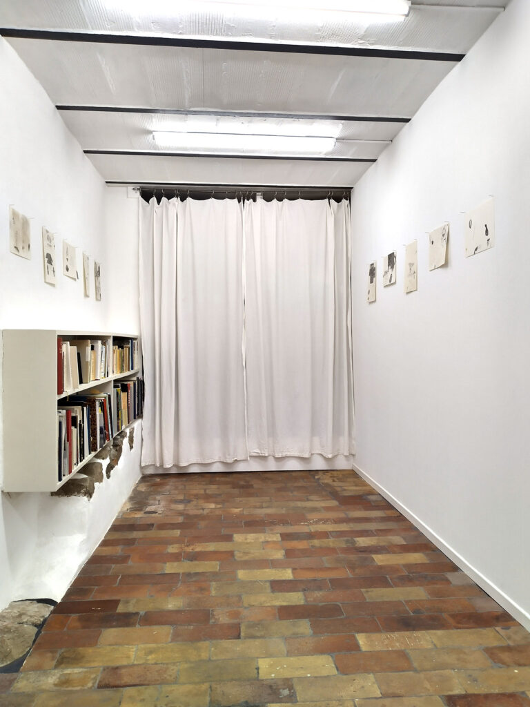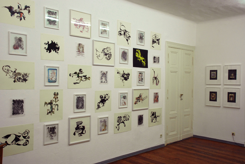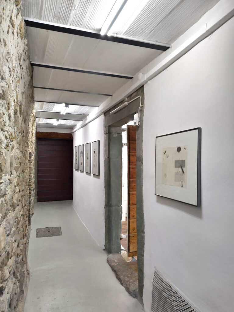 Going on by transforming some of the drawings into watercolours and lithografic prints, I created a series of works for this exhibition.