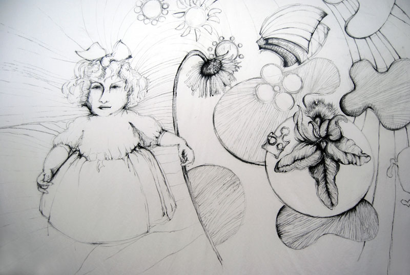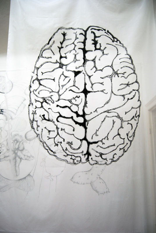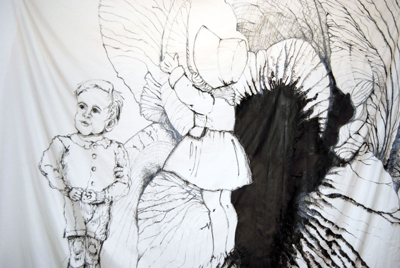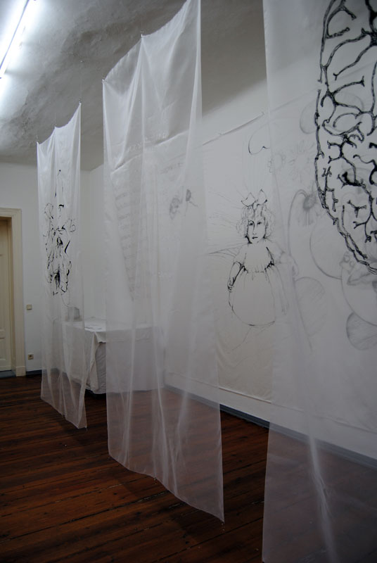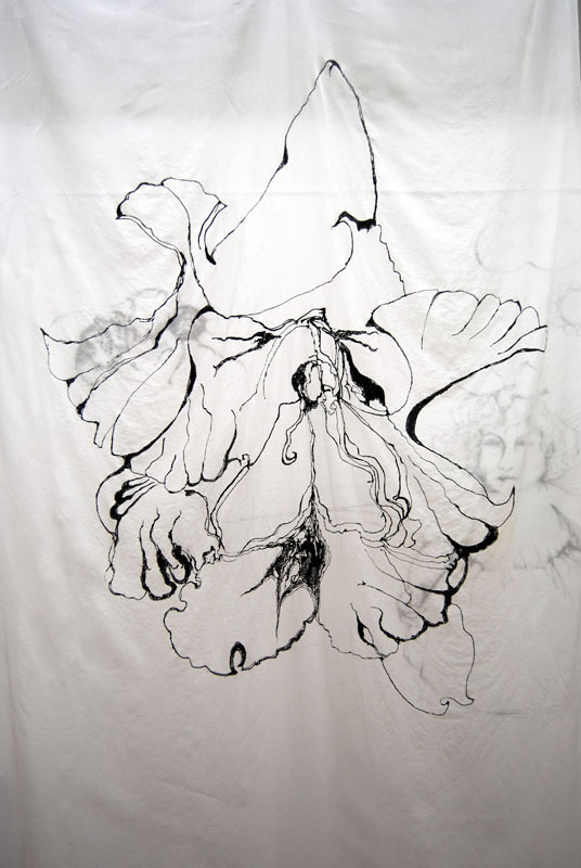 Mixed-media-installation (cotton, synthetics, embroidery, drawing)