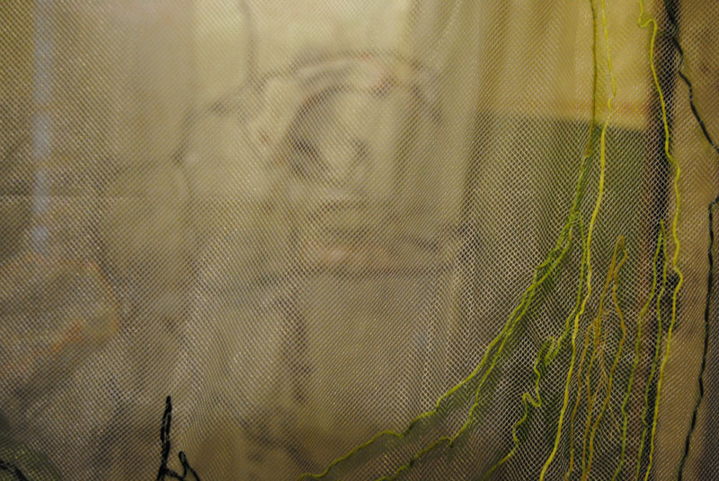 Nature Morte 1, Installation, 3 x Embroidery, nylon curtains, 220 x 180 cm