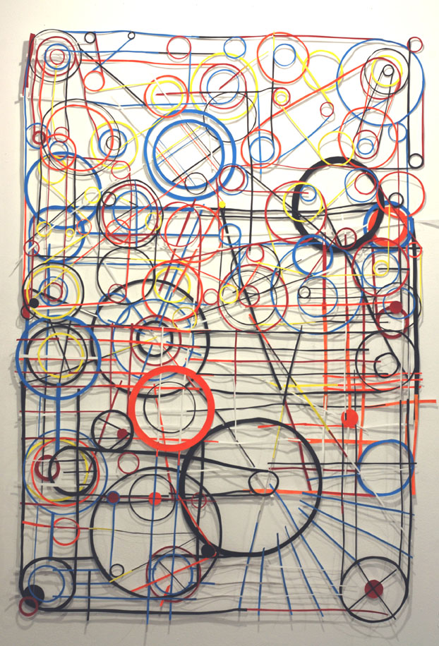 The work looks like a biogenetical experimental set-up. It actually deals with naming and classification in the context of standardization and codification.