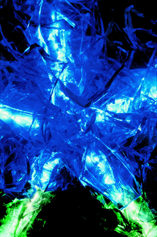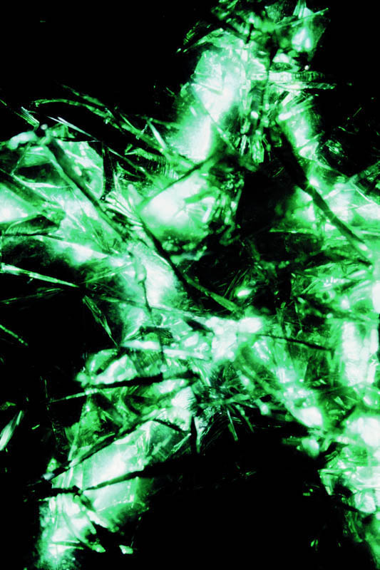 The series of photografies is the last result of a long lasting involvement in conceptual photografy. As I considered the analog and chemical processes, causing a calculable but still evident loss of control, as basical for my photografic work, I was not happy with the nececcity to digitalize and postproduce the slides. The photografies presented here show extremely small settings. I used a pentax 50mm macro with very long exposure. They follow the ideas of Moholy-Nagy in so far, as the light – as an energy you can guide but not control even within a set frame – is creating the image.