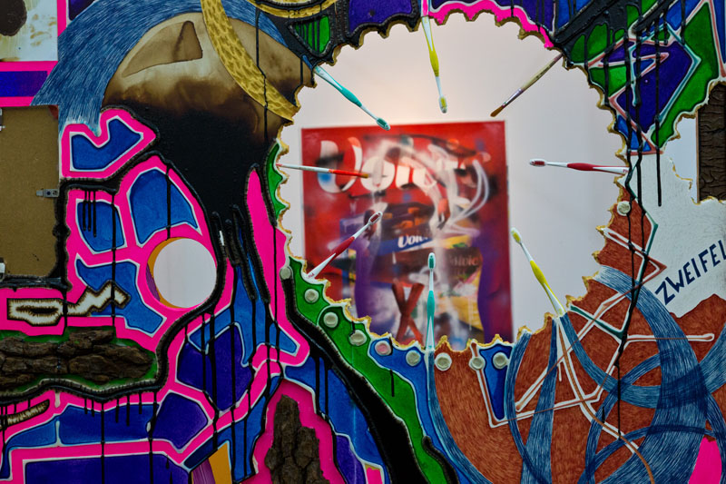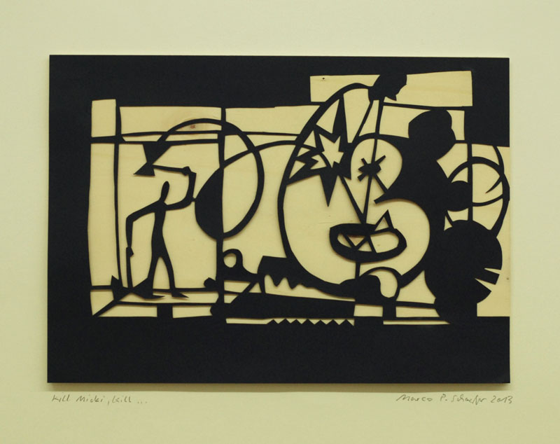 While the new paper cuts remain geometrically abstract and are sometimes dominated by strong stripes reminiscent of Pop Art, Schaefer’s earlier wall collages show finer and curvier lines as well as inclusions of writing or figurative elements. The associations that his works evoke therefore span a wide range from Sonja Delaunay, Fernand Léger, Alexander Calder, Bauhaus to Pop Art, Op Art and Comics. But every viewer of Schaefer’s works feels one thing: rhythm. Music. And no matter whether delicate or powerful, there is hardly a negative tone to be found. “Despite the lack of messages, my works reflect my inner music, the rhythm, the `be easy, be happy´ that I try to maintain in good times and bad.”