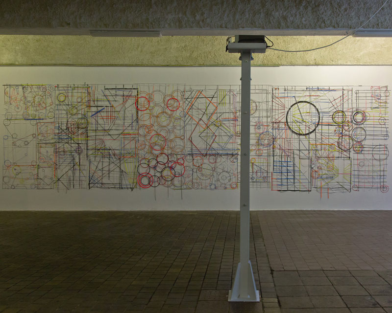 The installation was realized in the frame of the „Occupy Circle, Part II“ show in my studio – a collaboration with Dominik Eggermann. Common starting point of the works that are united in the installation is movement and so The Time.