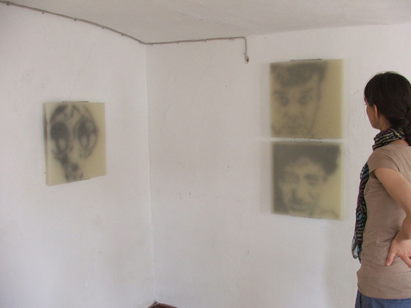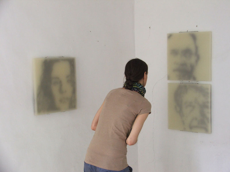 Schattenland is a programmatic cycle of images that deals wit the phenomenon of the apparitional and decaying. Artist-potraits, for example of Samuel Beckett, Morton Feldman and John Cage, but also of young artist from my circle of friends, appear as a reference to an art that exists at the verge of silence and the visible. Schattenland examines the borders of perceptibillity by the material that is used. All portraits are integrated in the backside of a board of wax as a casted relief. The translucent quality is changing the conciseness of the incrusted portraits depending on the light. (HS)