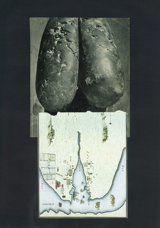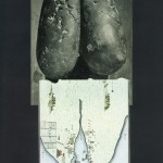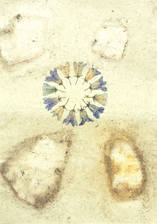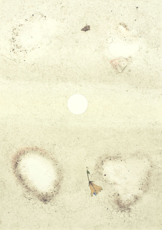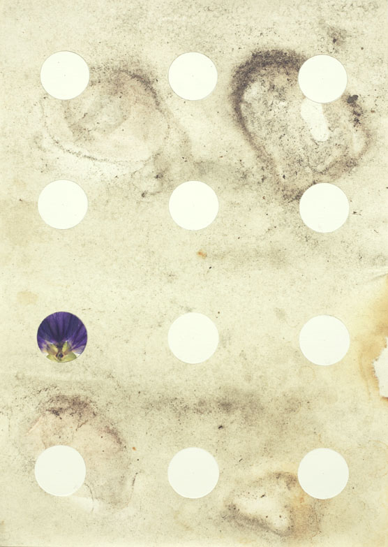 “white dots and flowers” is a short sequence 4 collages. In preperation I exposed sheets of paper to the winter 2012/13. The sheets were fixed with stones (see picture above).