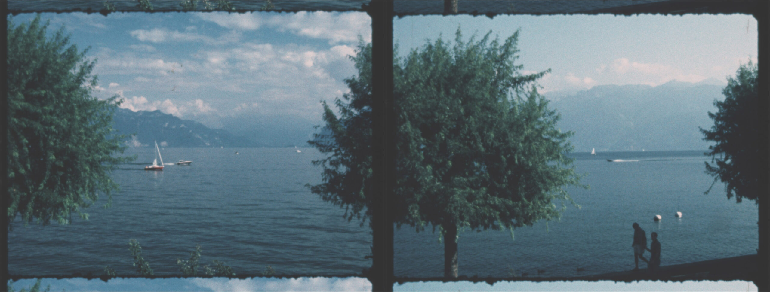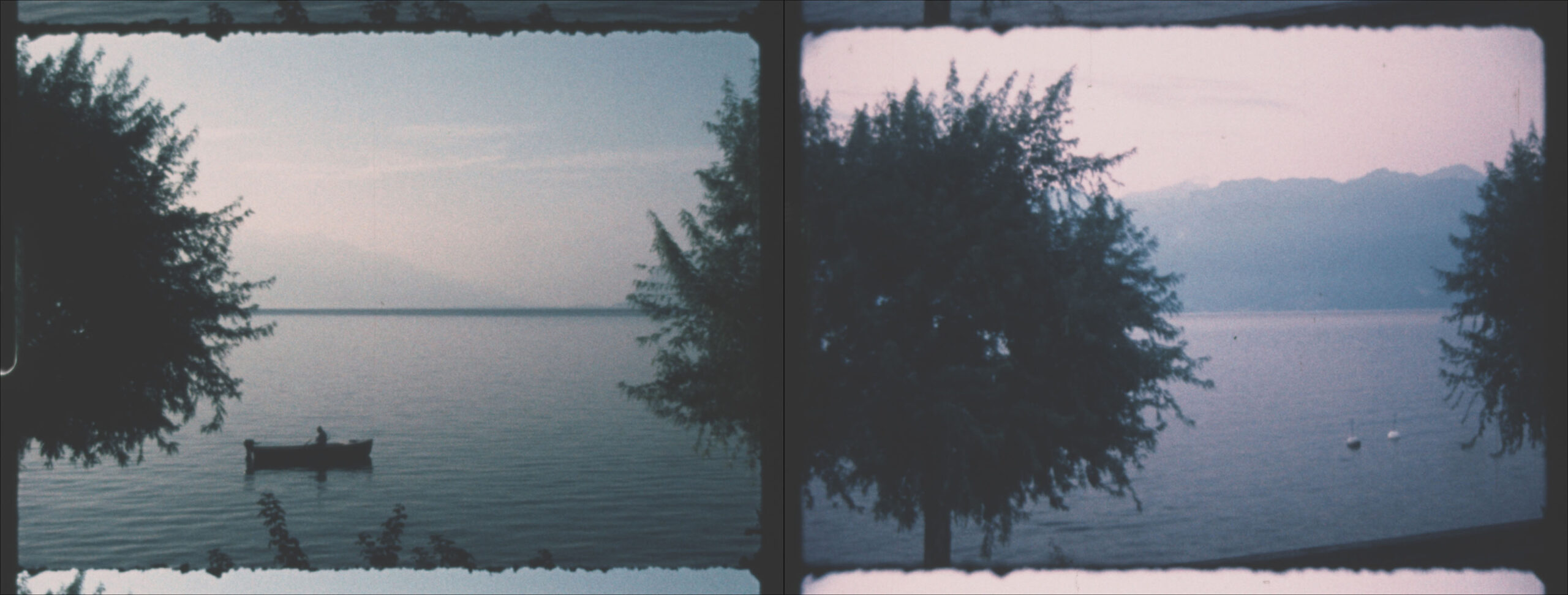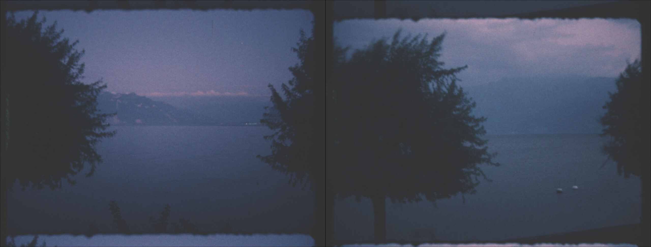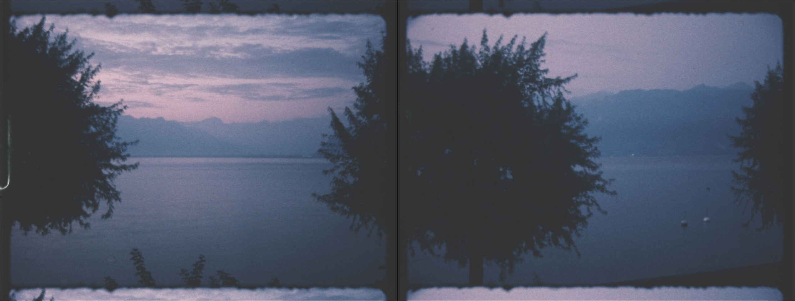 Two Super 8 films, projected in parallel, show a panoramic view of Lac Leman in time-lapse.