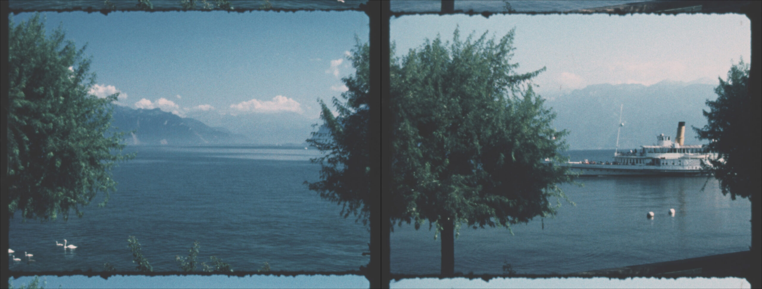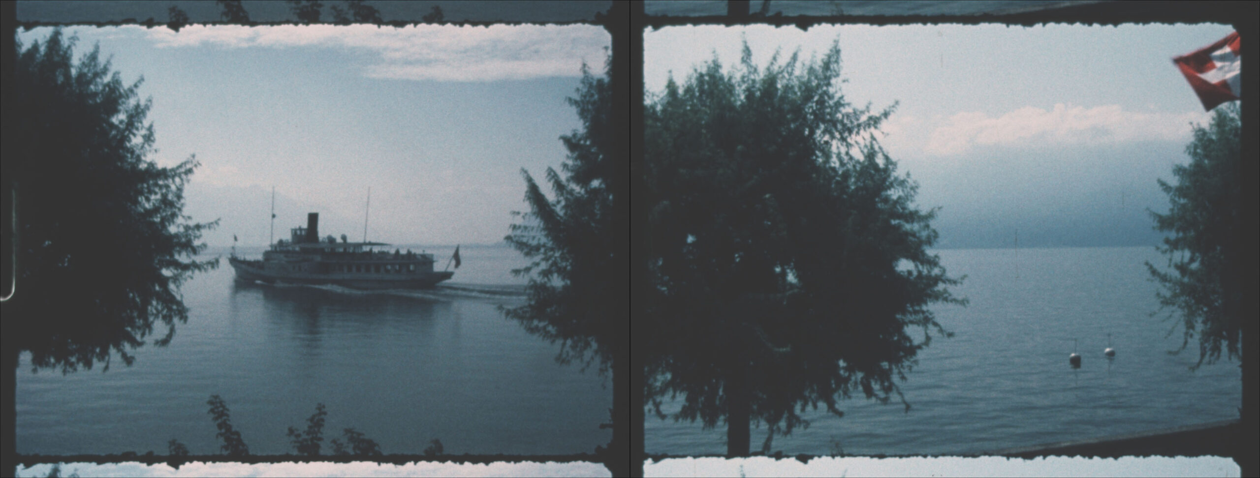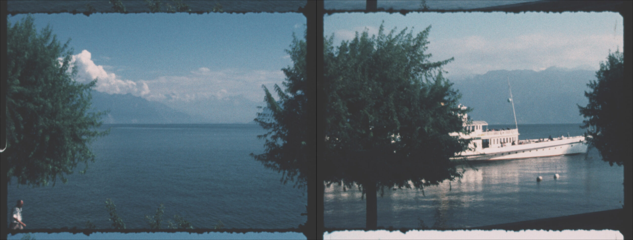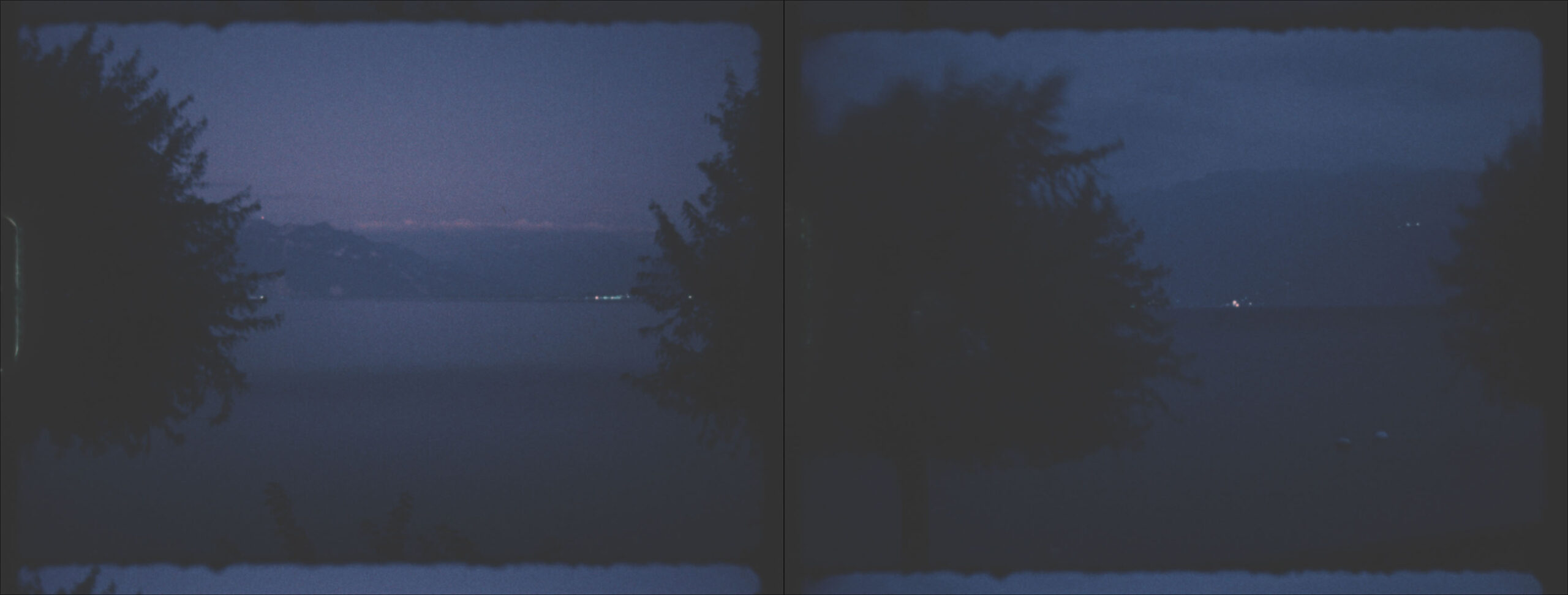 Two Super 8 films, projected in parallel, show a panoramic view of Lac Leman in time-lapse.