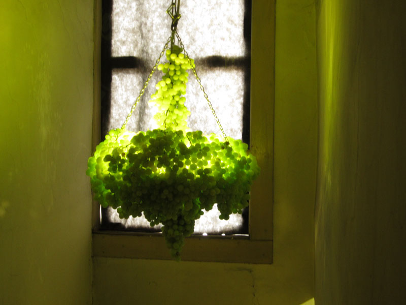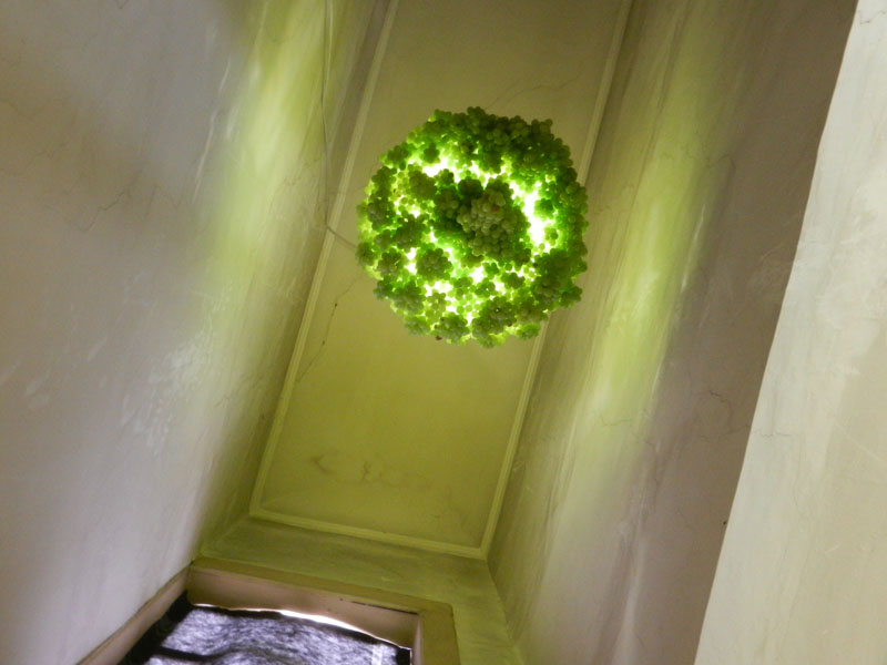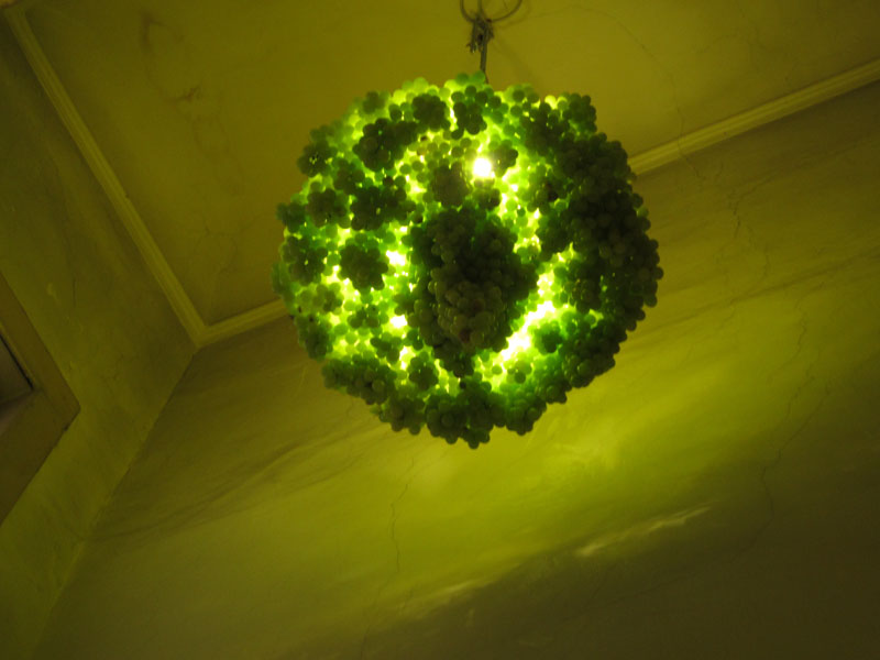 In this collaboration, the artists Manon Awst and Benjamin Walther, create an ephemeral sculpure. The sculpture, a chandelier made of grapes with a luxiurous, baroque appeal, decays with the grapes in a simultanious, performative process. The appropriation of the luxiurous finery is limited to a short space of time – especially compared to extremely longlasting classical sculptures made of bronze or marble -. A symbol of european, aristocratic culture decays in an organic process. In this same process the grapes are producing concentrated fructose – to sweeten life -.