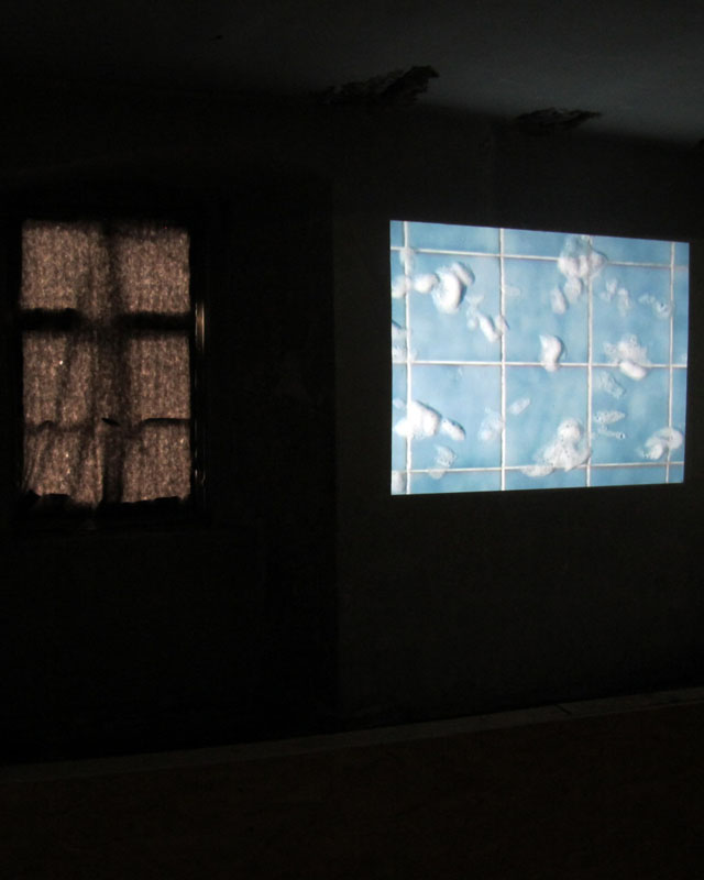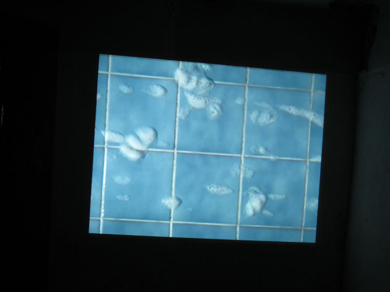 The cloudlike foam is slowly floating along the skyblue tiles. A banal detail converts into a distraction of everyday life, into a world of dreams and illusion. CS