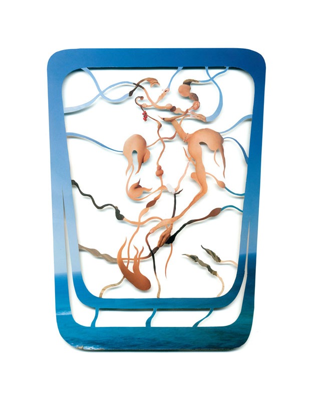 In her work Karina Mosegard is connecting two levels of the perception of life. The underlaying, opaque level shows us a child women, who is embedded in the mysteries of sexuality and the various forms of furtility, who knows about the interweavment of all things and beings, the moleculuar and interstellar relations. This level is self-evident and intuitive.