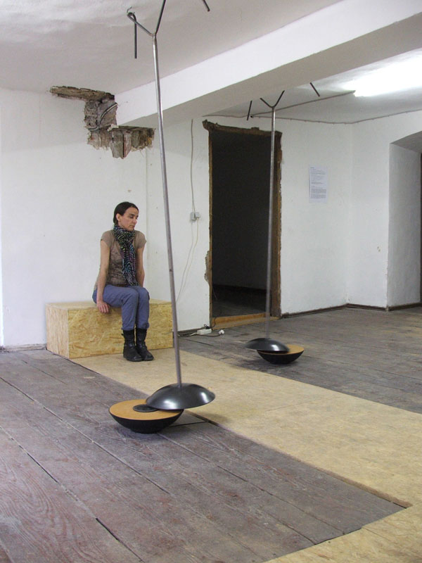 The installation consists of two speakers that are integrated in two bowls that are covered up by lids. Recordings of historical bells, most of them destroyed during World War II, sound from the speakers under the lids. …. Moving the parabolic lids create a momentum similar to the one of swinging bells. At the same time the movement of the lids influences the given sound by periodically filtering and reflected it, creating the impression of listening to church bells far away.