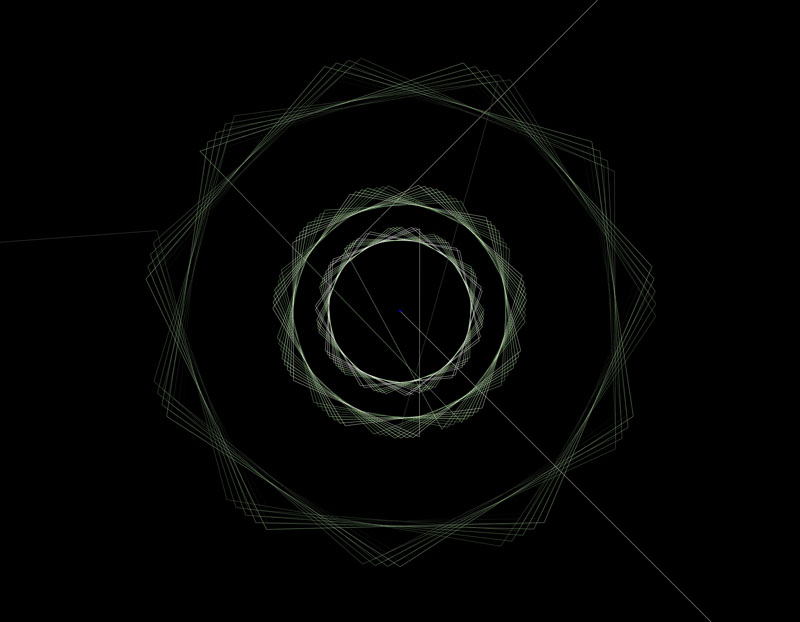 Dominik Eggermanns works are based on the programming of Java-Apps. They were presented on 3 screens, the sound on headphones. The visual and acoustic sensation is created by an itterative algorithmical parameter that initiates an aleatoric process.