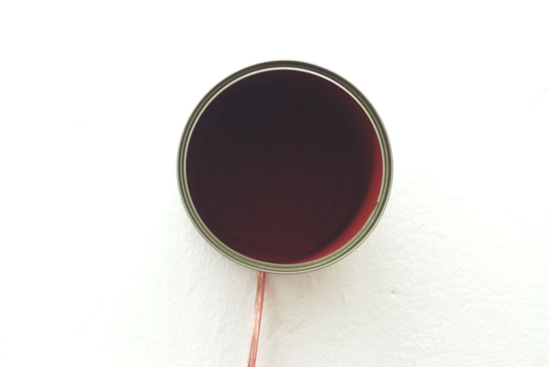The first level to approach the object is to look at the way it is made. In an extremly longlasting – and boring – process more than 200 0´s and I´s are painted on an industrial tin can. The resulting pattern reminds you off archaic embroiderings. A very old way to change an utensil into a preciocity by investing time and manual efford. The time and labour intensive way to create value is contrasting the binary code, that is basic for an extremly fast –and seemingly effordless – dissemination of information as value.