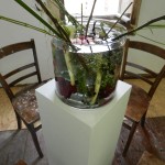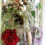 Installation (vase, flowers, mirrorshards)