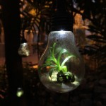 7 handpainted empty dogfood cans, daisies, glass board, natural light bulbs
