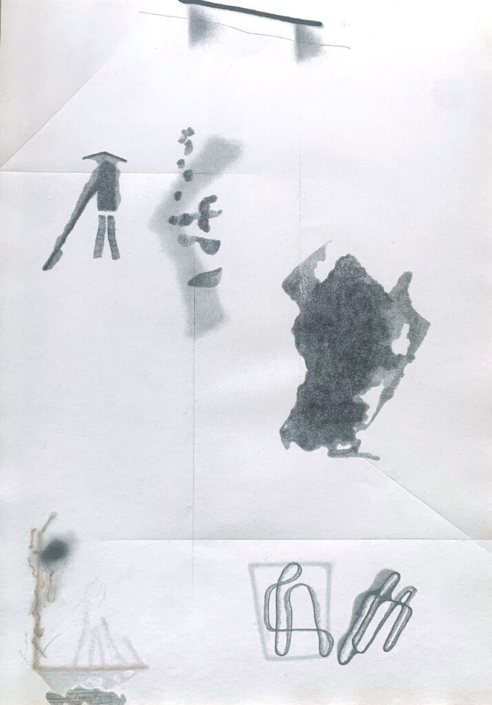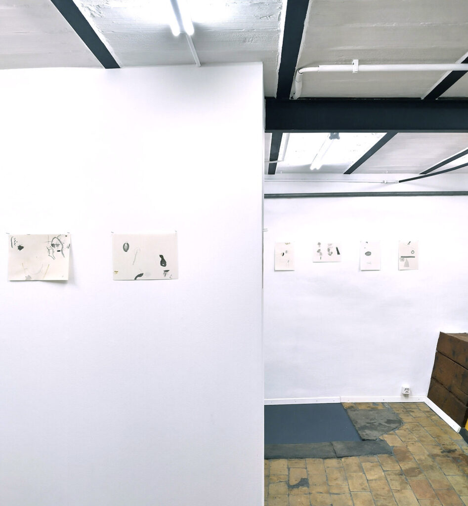 ” In 2021–2023 I have worked to explore the possibilities and challenges of line and drawing. I have experimented with “Automatic drawing”, as several surrealists also did. I continued working with the drawings and “sampled” them into new constellations. In the process, special universes are created, composed of abstractions and recognizable creatures.