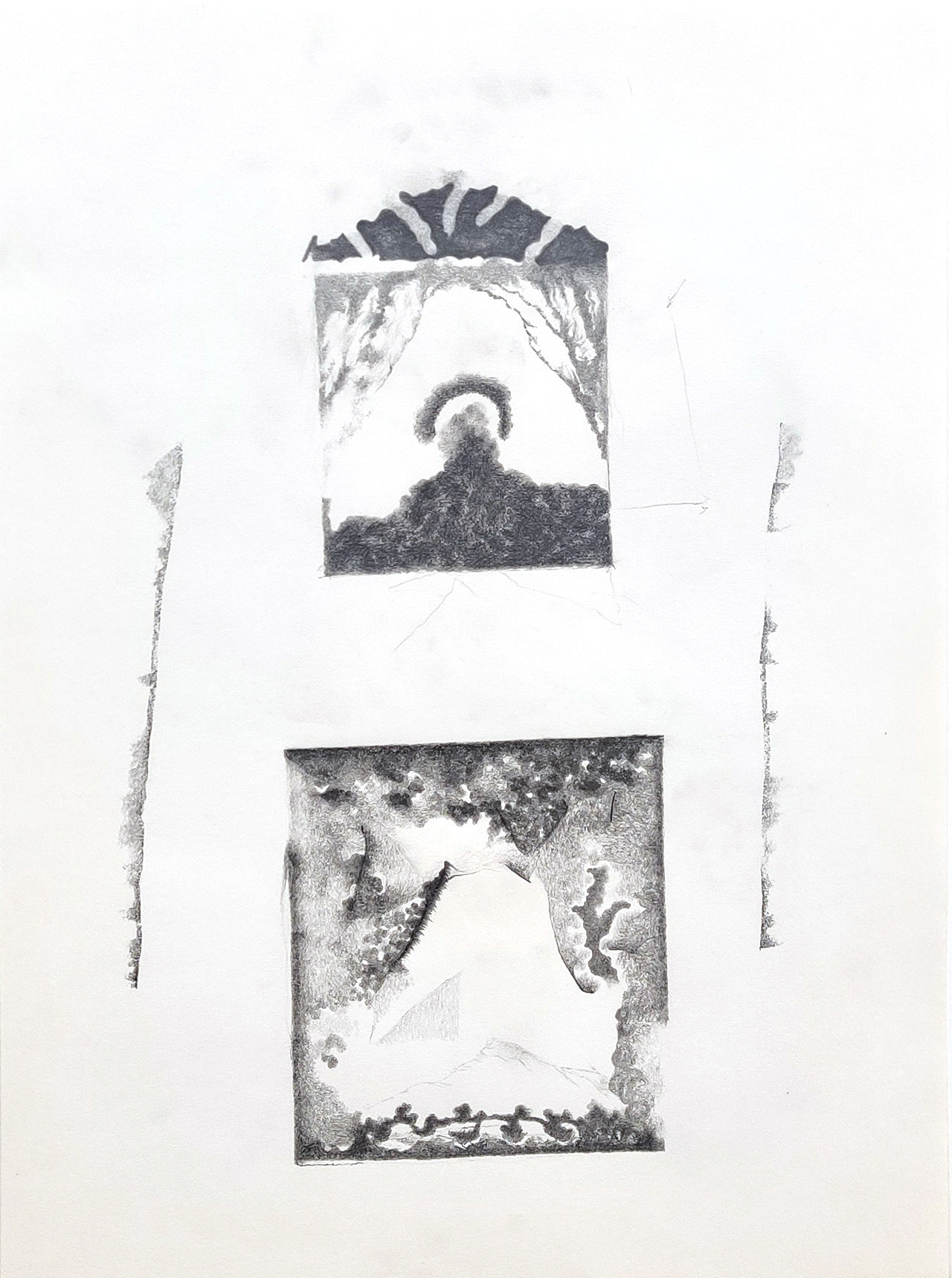 The strange abstractions and ambiguous fragments invite the viewer into a different landscape, a universe of its own.“